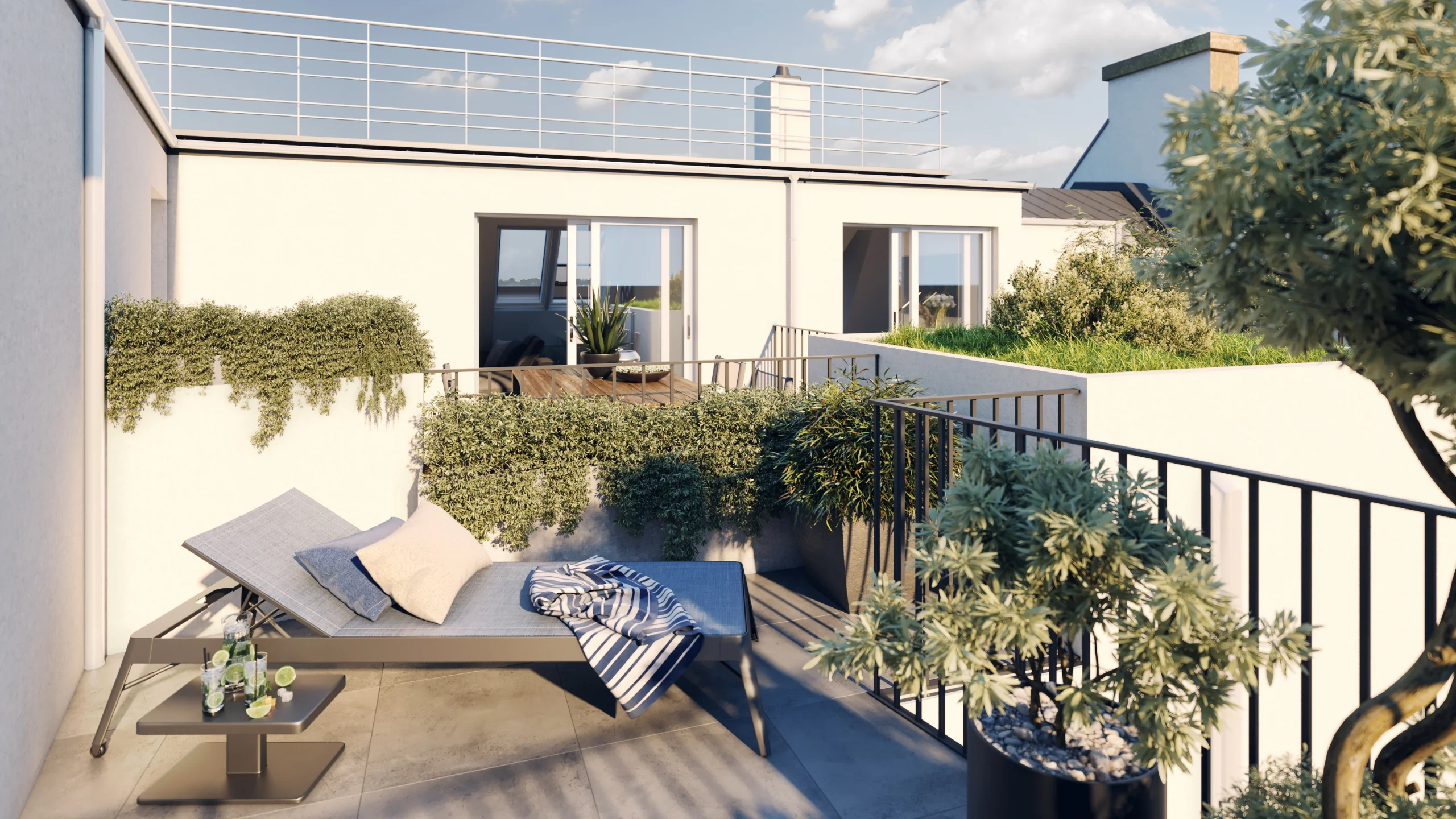 Durch den Dachausbau entstehen 3 Dachgeschosswohnungen mit großzügigen Terrassen und Dachterrassenflächen. Die Dachgeschosswohnungen verfügen über eine Klimaanlage.